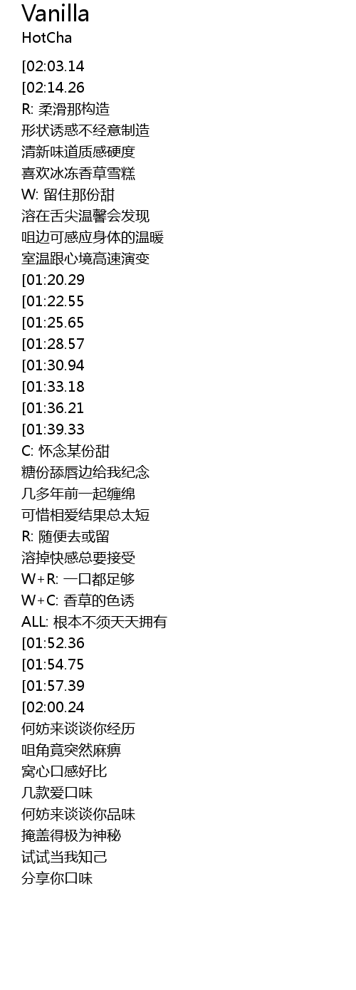 | [00:08.00][02:03.14] | Hotcha-Vanilla |