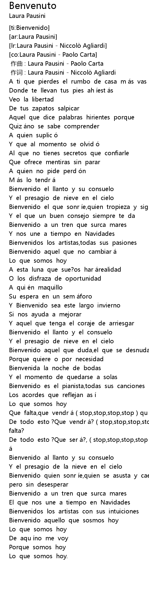 | [00:00.00] | 作曲 : Laura Pausini - Paolo Carta |