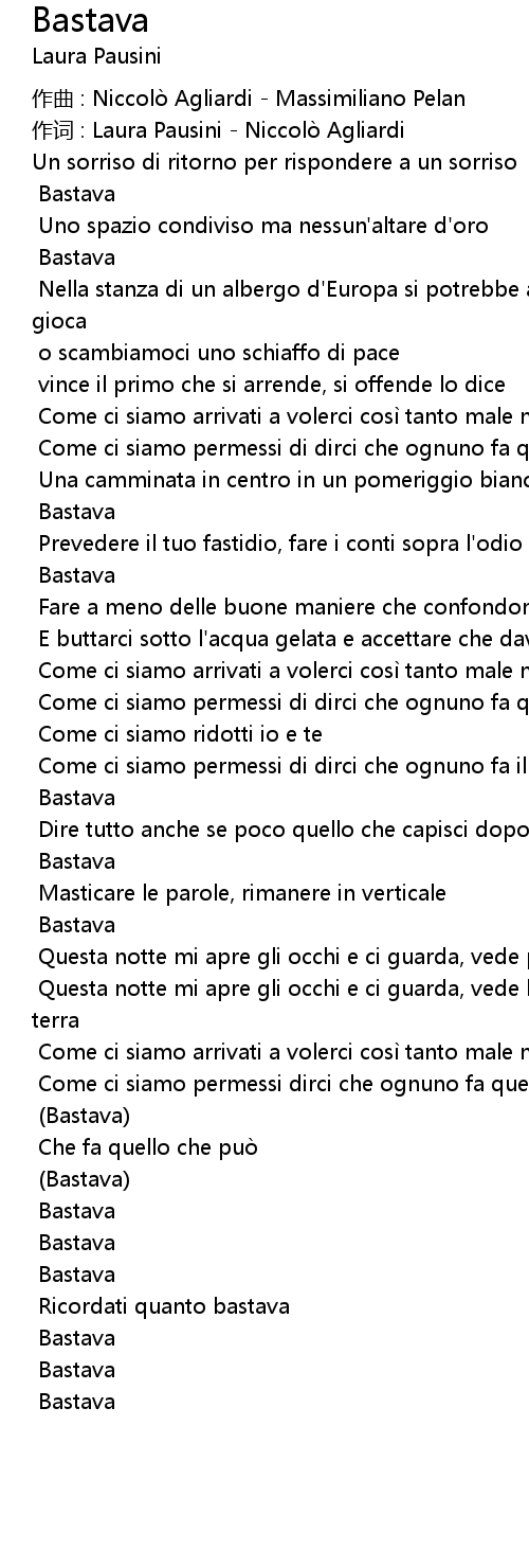| 作词 : Laura Pausini - Niccolò Agliardi | |