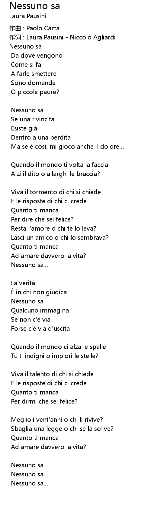 | 歌曲 | Nessuno sa |