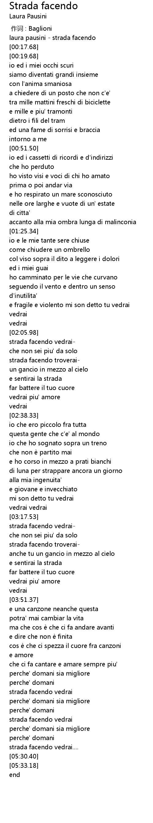 | [00:00.00] | laura pausini - strada facendo |