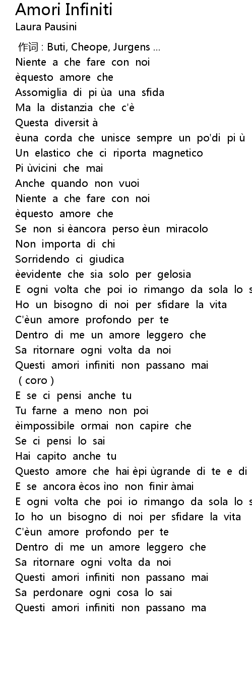 | [02:18.447] | Questo amore che hai èpi ùgrande di te e di me |