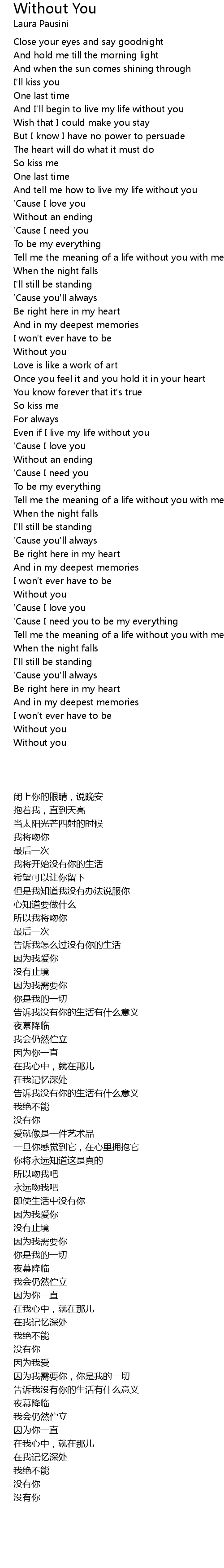 | 歌曲 | Without You |