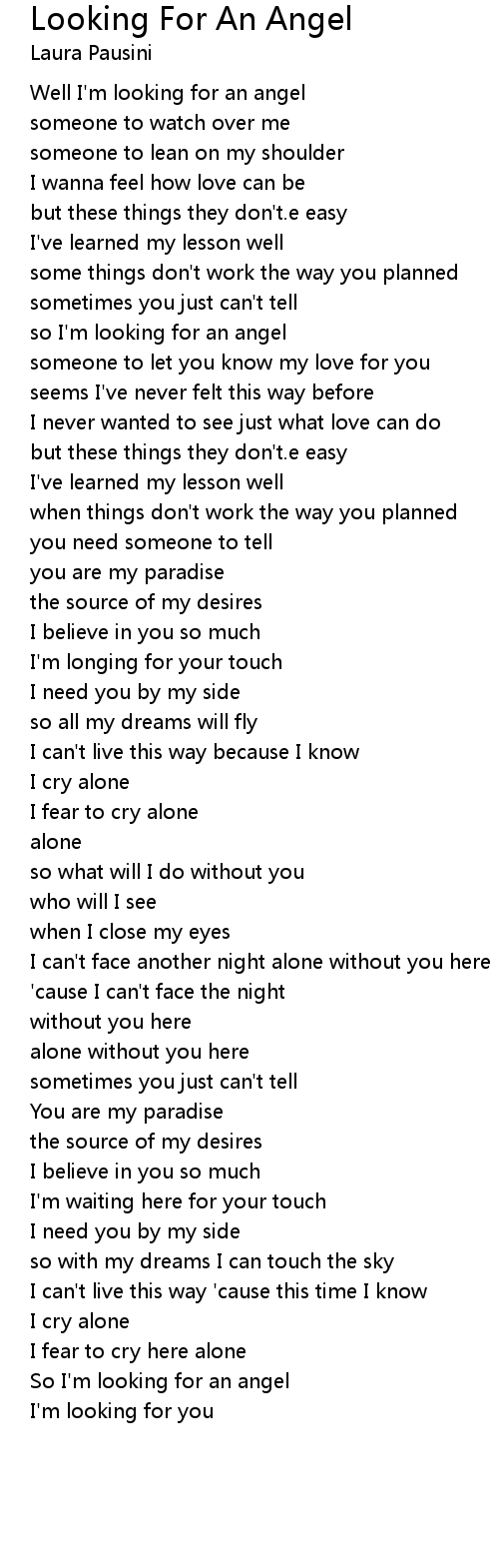 So I'm looking for an angel |