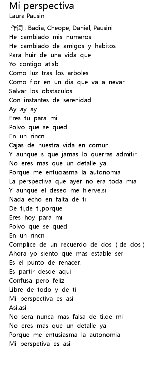 | [01:22.59] | La perspectiva que ayer no era toda mia |