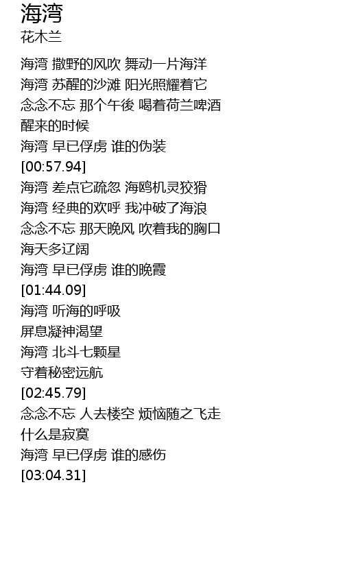 | [02:57.67] | 海湾 早已俘虏 谁的感伤 |