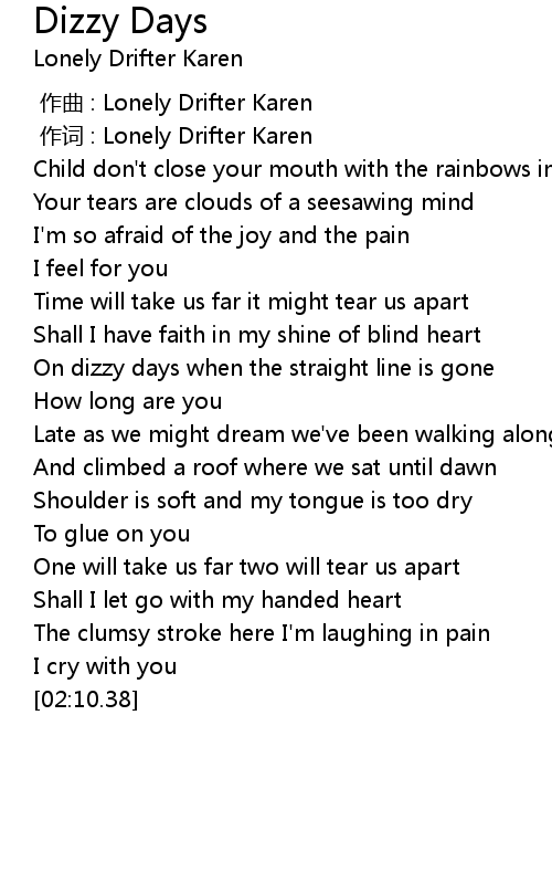 | [00:01.00] | 作词 : Lonely Drifter Karen |