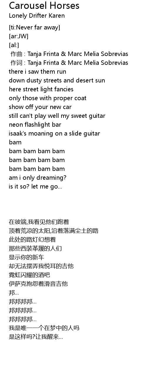 | [00:01.00] | 作词 : Tanja Frinta & Marc Melia Sobrevias |