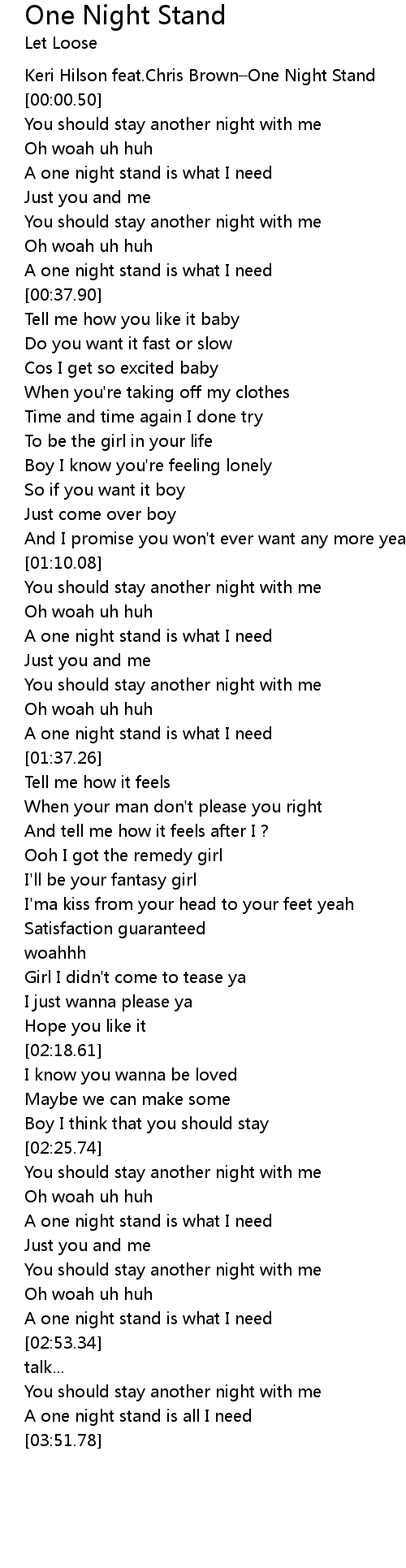 | [00:-01.00] | Keri Hilson feat. Chris Brown One Night Stand |