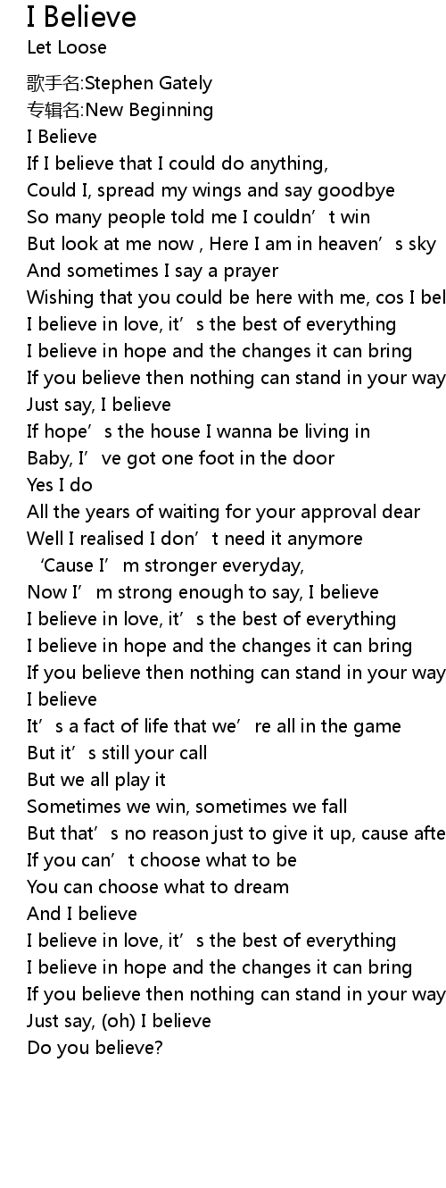 | [00:02.00] | I Believe |