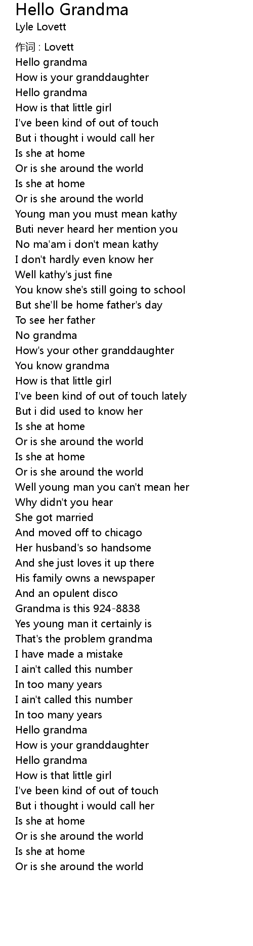 | 歌曲 | Hello Grandma |