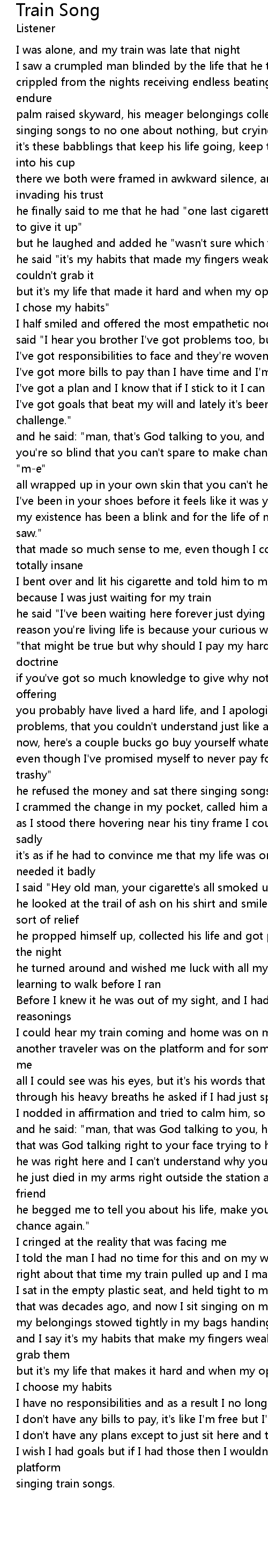 Train Song 歌词