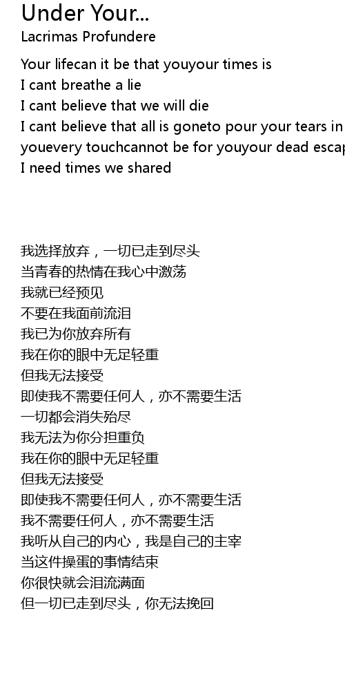 | 歌曲 | Under Your... |