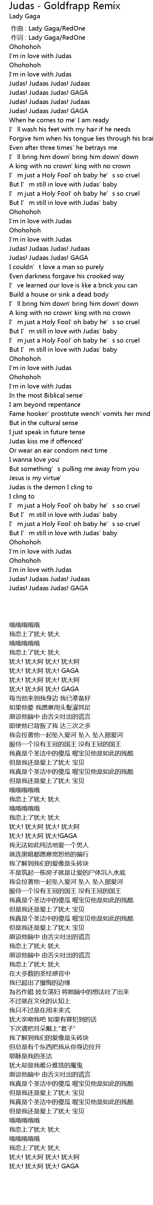 | [00:18.610] | Judas! Judaas Judas! GAGA |