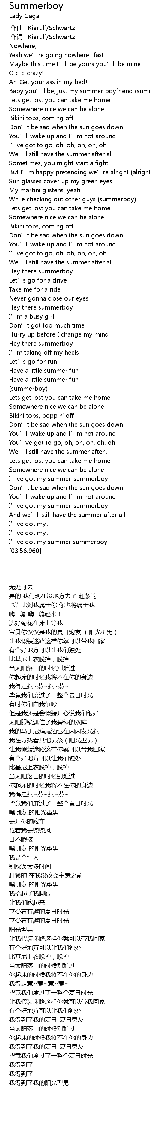 | [00:38.100] | Baby you' ll be, just my summer boyfriend summerboy |