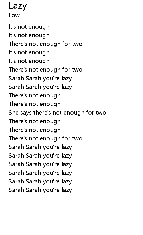 Sarah Sarah you're lazy |