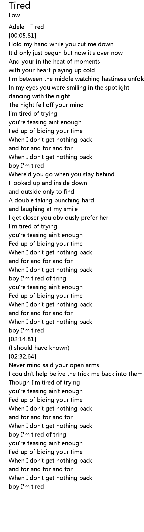 | [00:03.11] | Adele - Tired |