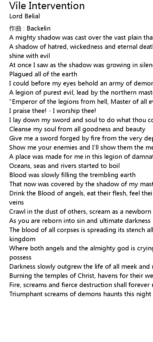 | "Emperor of the legions from hell, Master of all evil, King of all sins | |