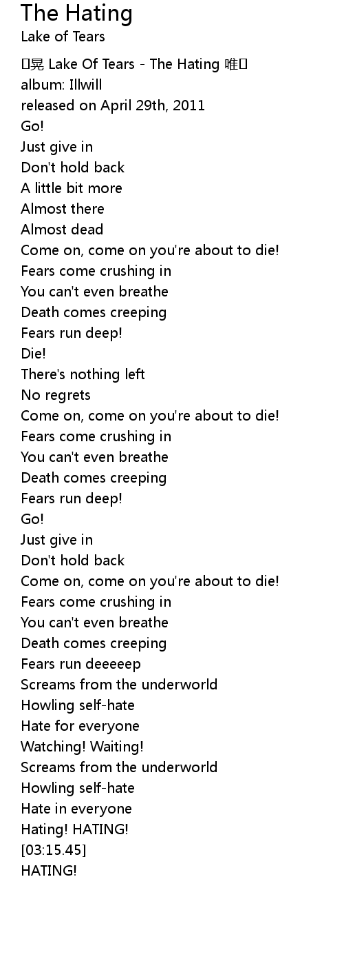 | [00:01.80] | huǎng Lake Of Tears The Hating wéi |