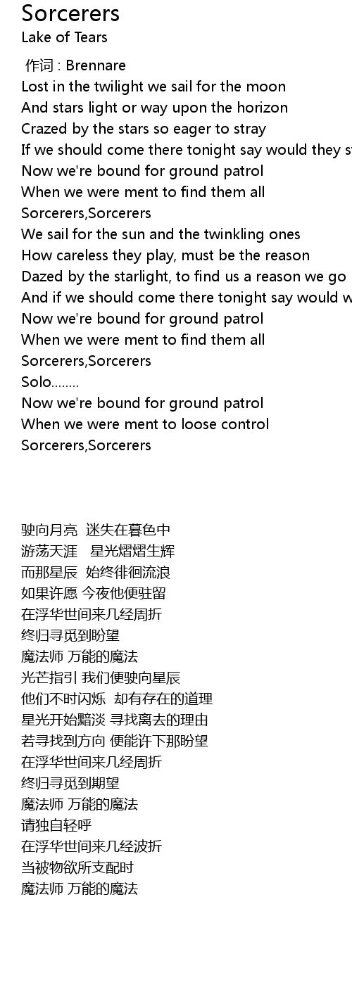 | [02:06.93] | Sorcerers,Sorcerers |