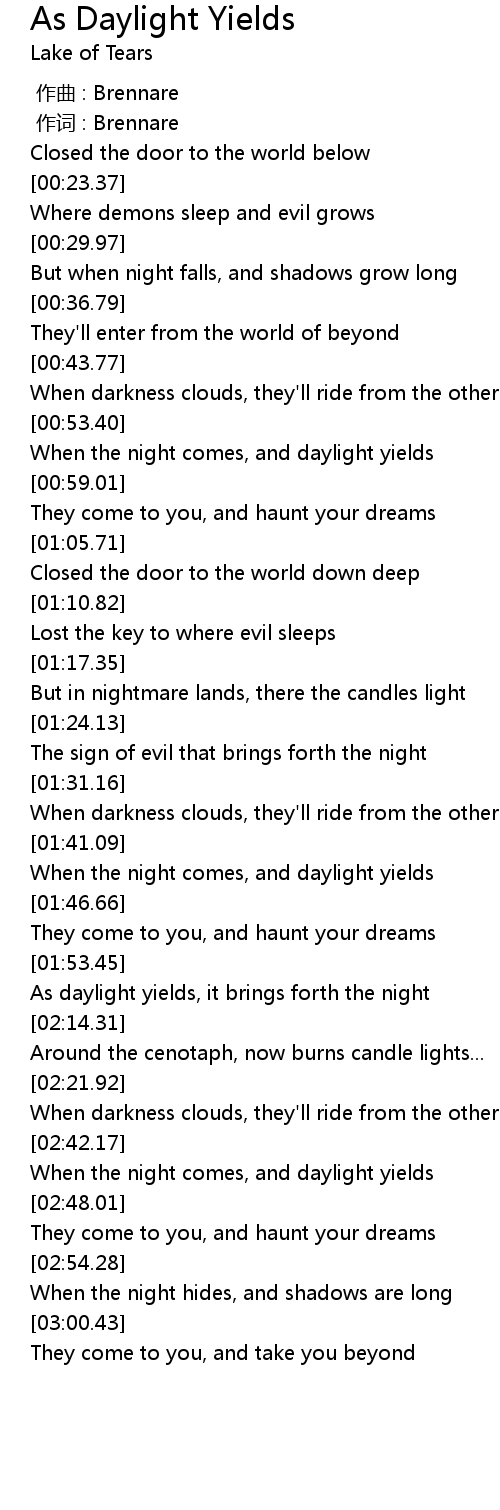 | [02:09.71] | As daylight yields, it brings forth the night |