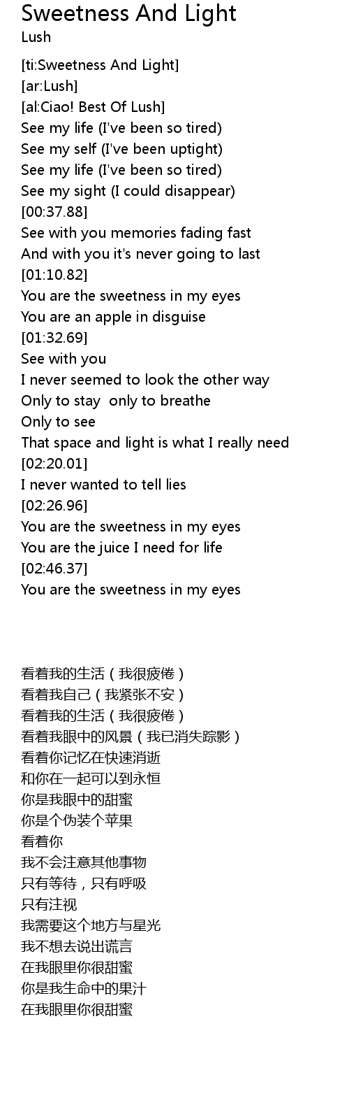 [ti:Sweetness And Light] |
