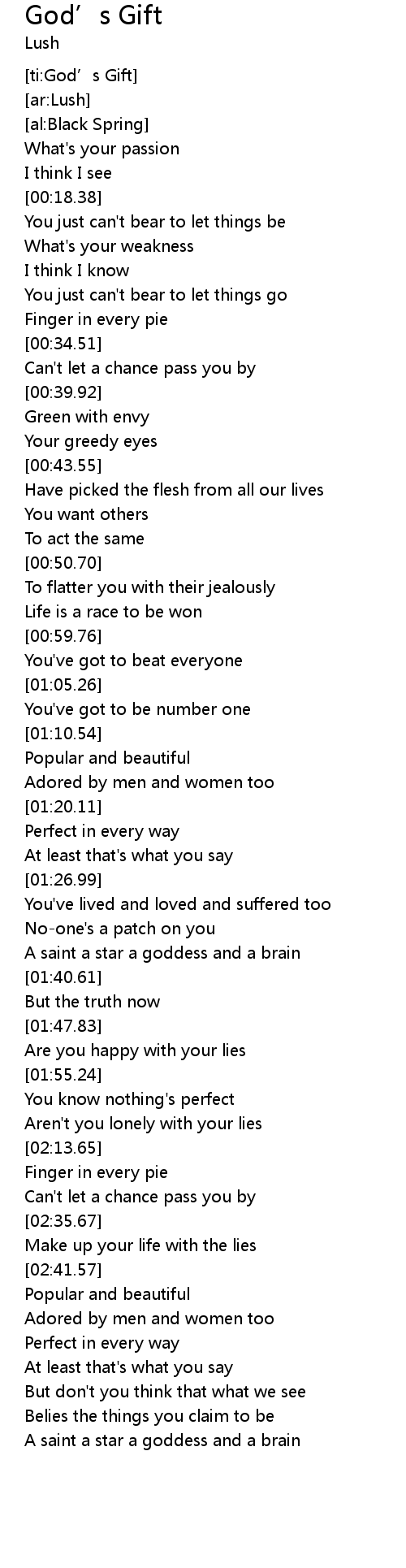 | [ti:God’s Gift] | |