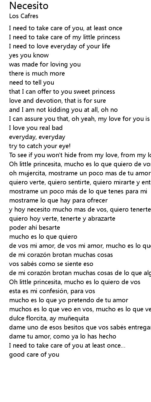 | Oh little princesita, mucho es lo que quiero de vos | |