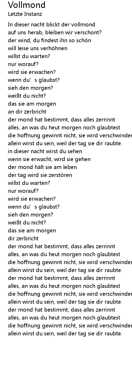| 歌曲 | Vollmond |