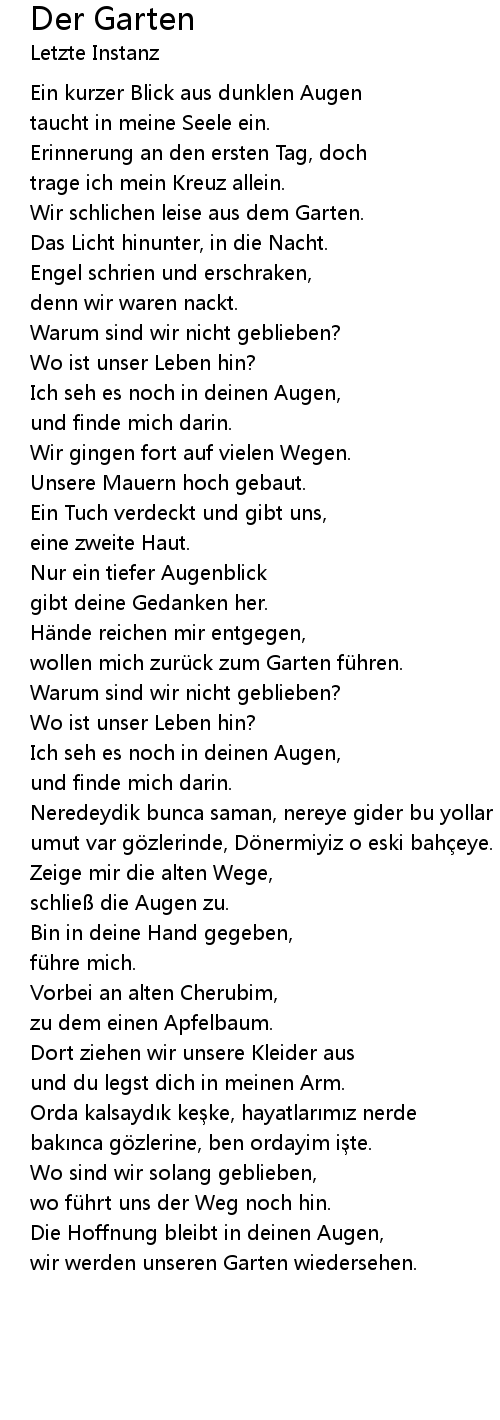 | wollen mich zurü ck zum Garten fü hren. | |