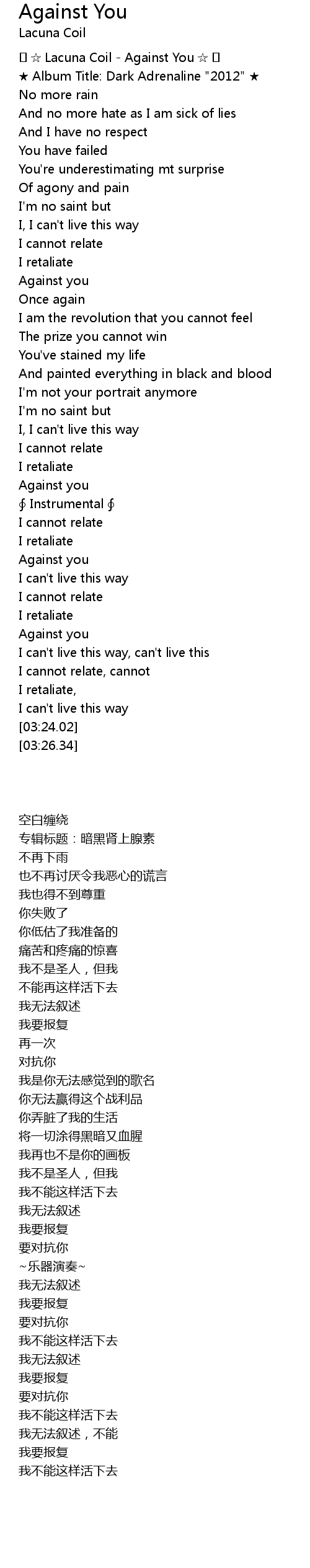 | [00:01.01] | Lacuna Coil Against You |