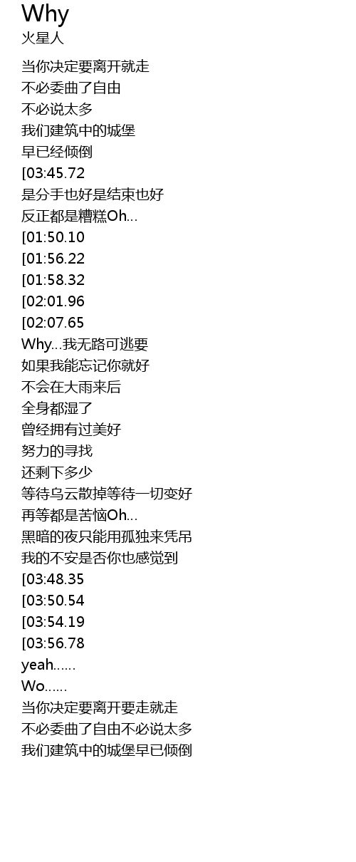 | [00:52.52][01:50.10][02:50.64] | Why…我无路可逃 |