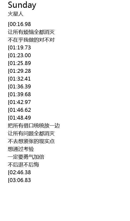| [00:46.46][01:39.68][02:26.51][02:39.44][02:52.36] | 最爱快乐的星期天 |