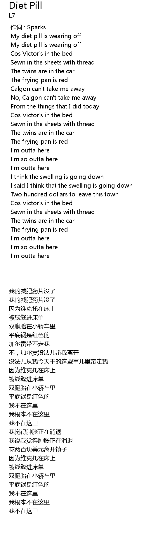 | [00:25.067] | 我的减肥药片没了 |