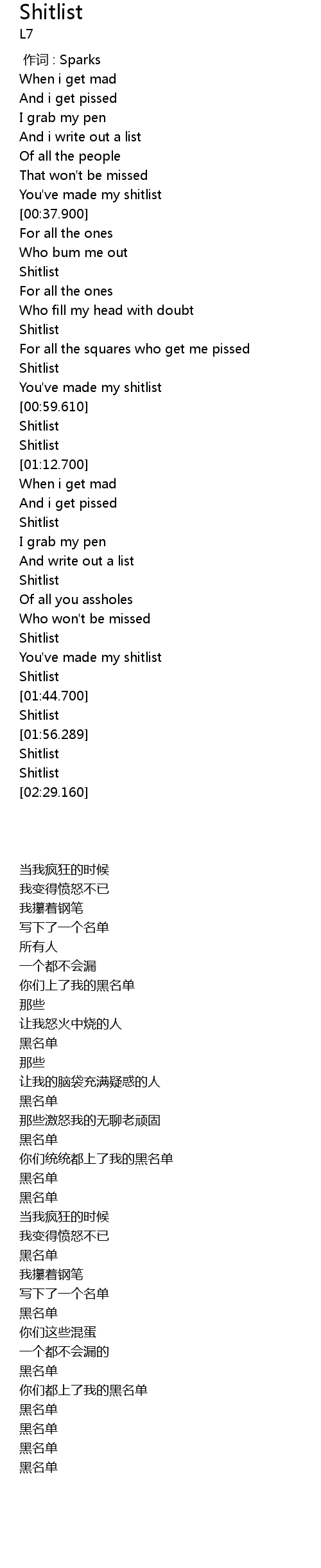 | [00:57.500] | 你们统统都上了我的黑名单 |