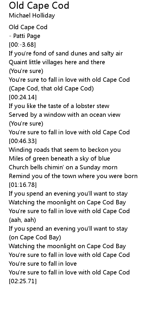 (Cape Cod, that old Cape Cod) |