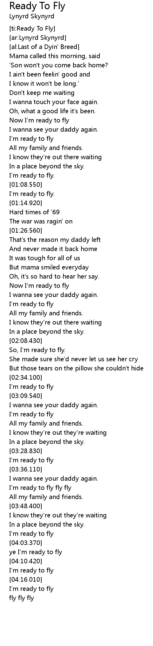 Ready To Fly 歌词