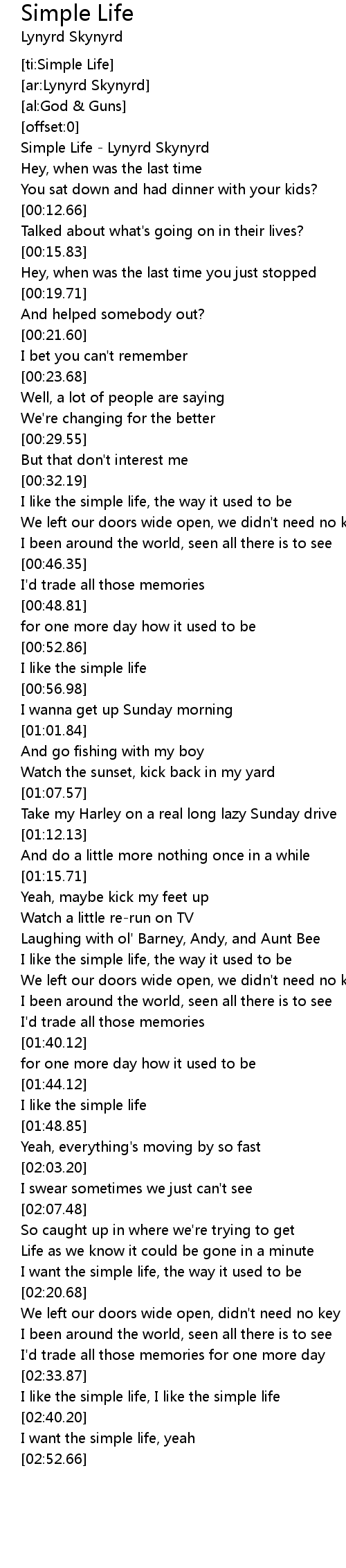 [00:00.51] Simple Life - Lynyrd Skynyrd
