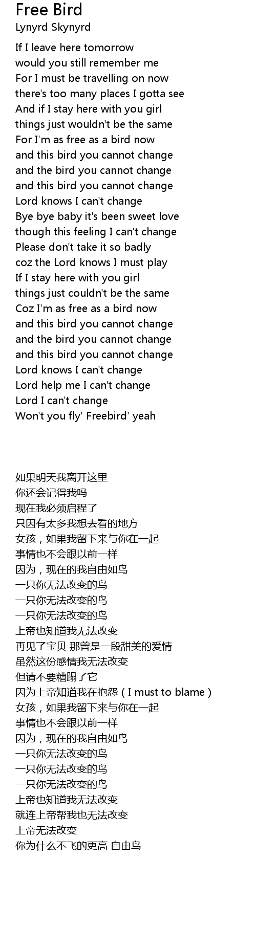 Won't you fly' Freebird' yeah |