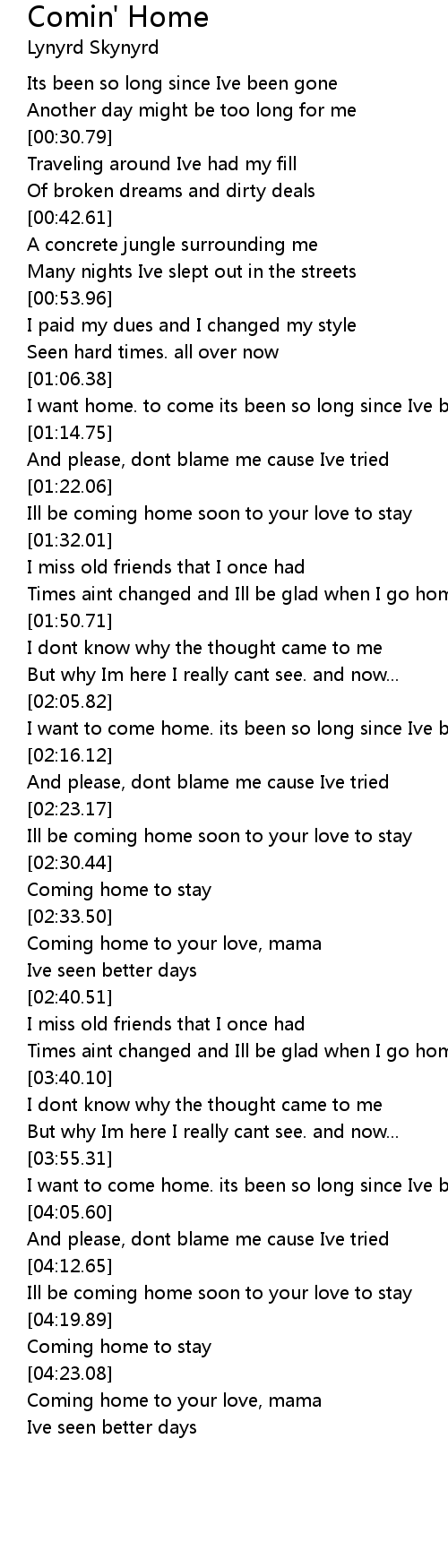 I want home. to come its been so long since Ive been away |