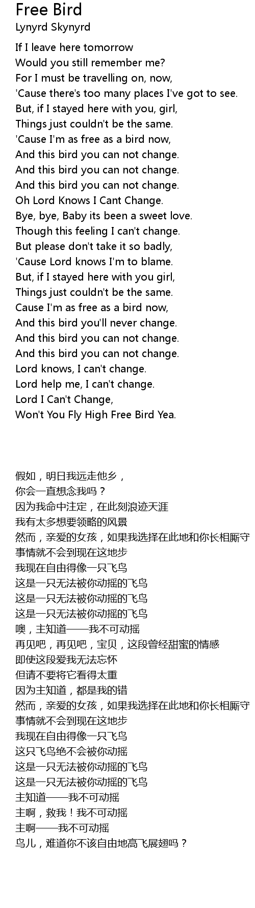 Won't You Fly High Free Bird Yea. |