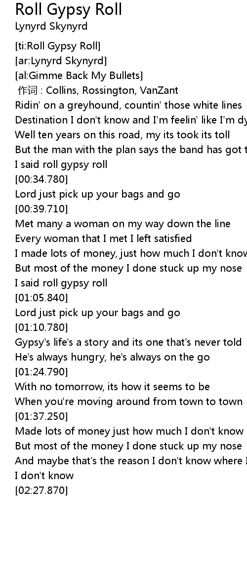 | [01:15.220] | Gypsy' s life' s a story and its one that' s never told |