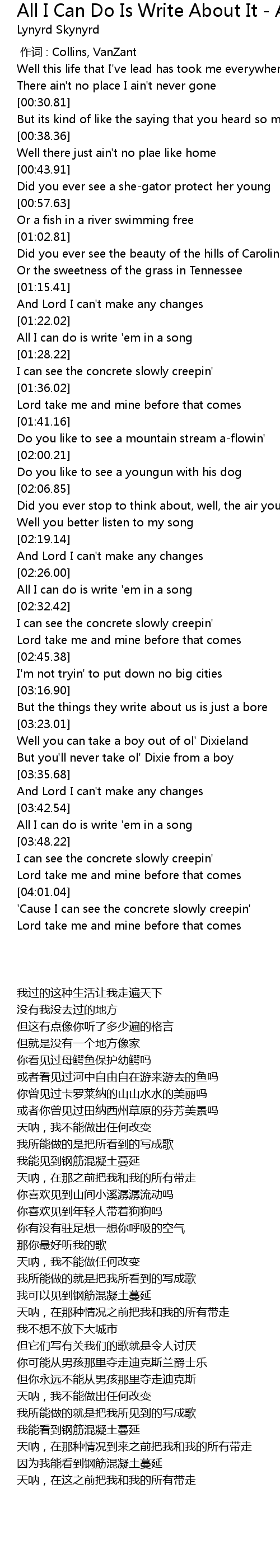| [03:44.29] | 我所能做的就是把我所见到的写成歌 |
