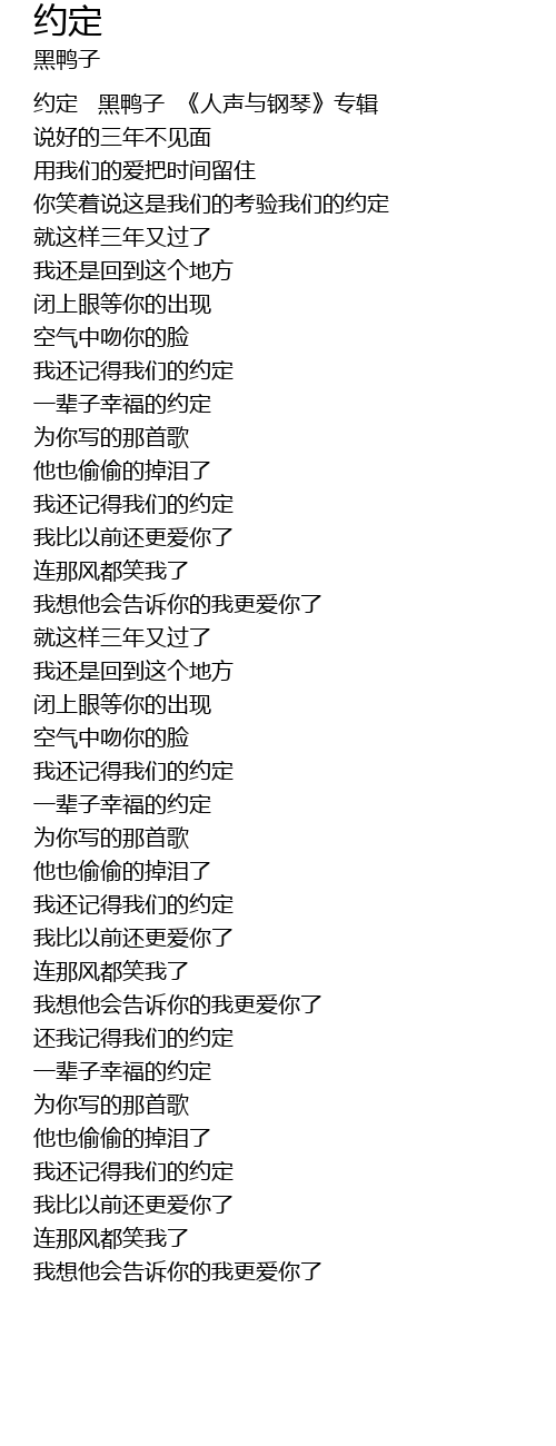 | [00:01.33] | 约定 黑鸭子 《人声与钢琴》专辑 |