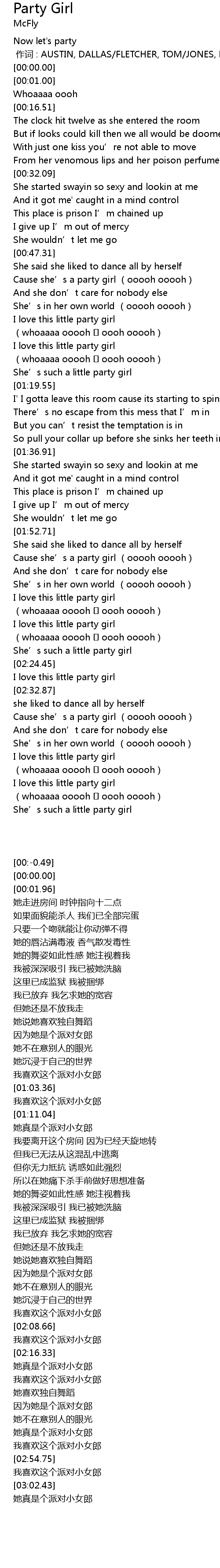 | [03:00.47] | 我喜欢这个派对小女郎 |