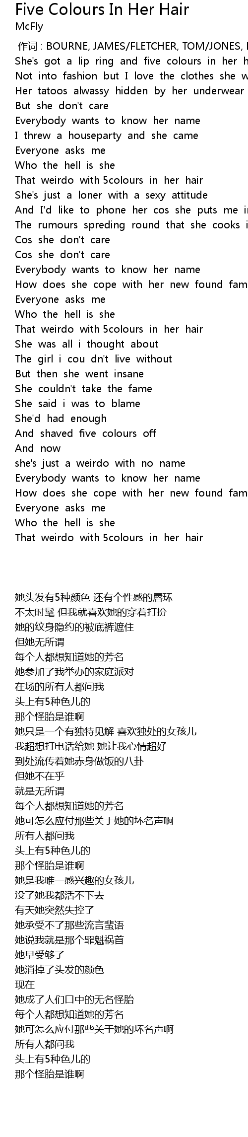 | [00:52.16] | That weirdo with 5colours in her hair |