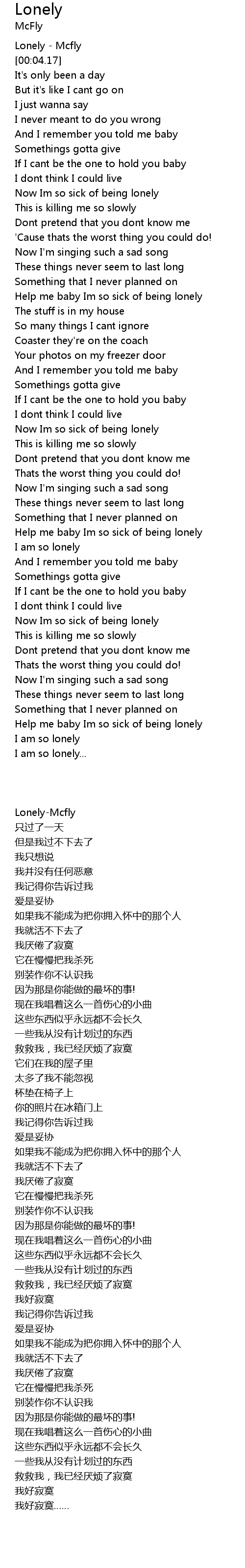 Lonely - Mcfly |