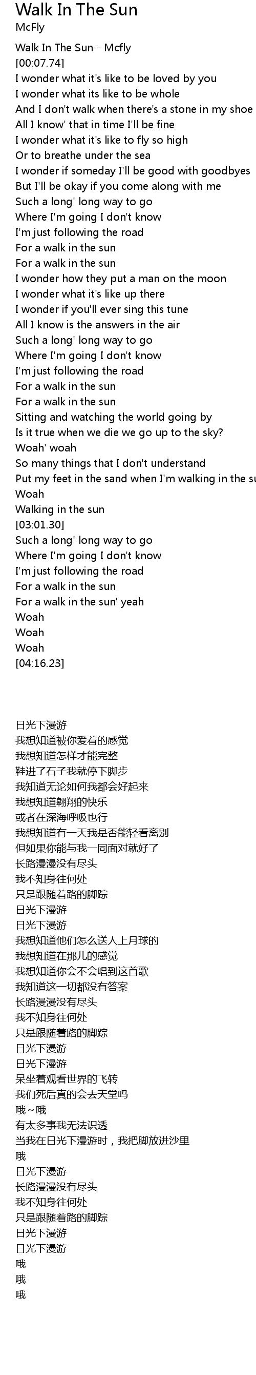 Walk In The Sun - Mcfly |