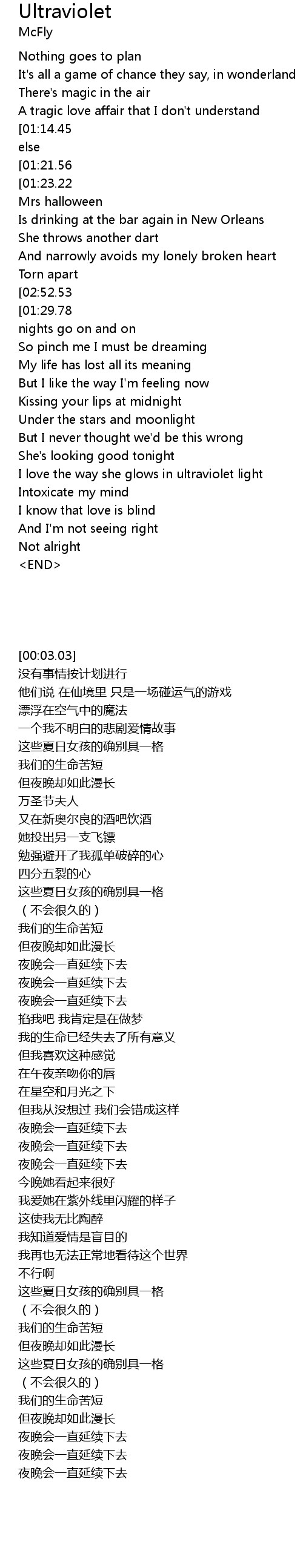 | [02:25.56] | I love the way she glows in ultraviolet light |