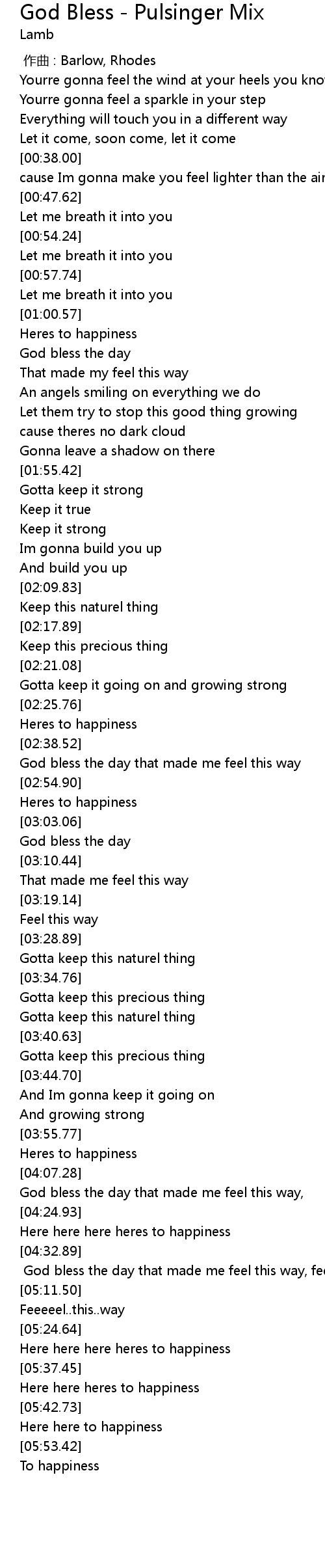 | [04:38.00] | God bless the day that made me feel this way, feel this way |